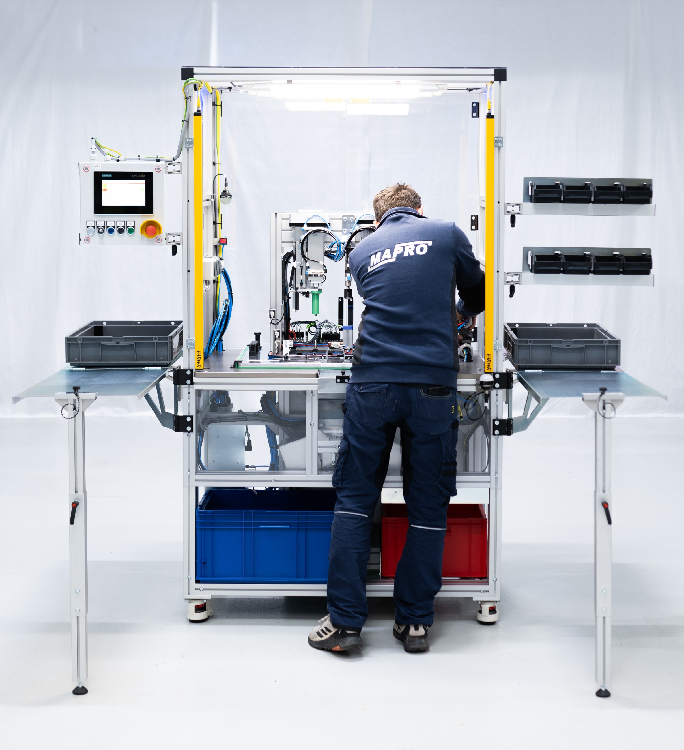 Montážní a kontrolní stanice jsou samostatně stojící poloautomatická jedno nebo víceúčelová zařízení. Obsluhuje je operátor. Pokud je operátor nahrazen robotem, je možné stanici automatizovat plně nebo ji zaintegrovat do automatizované produkční linky.