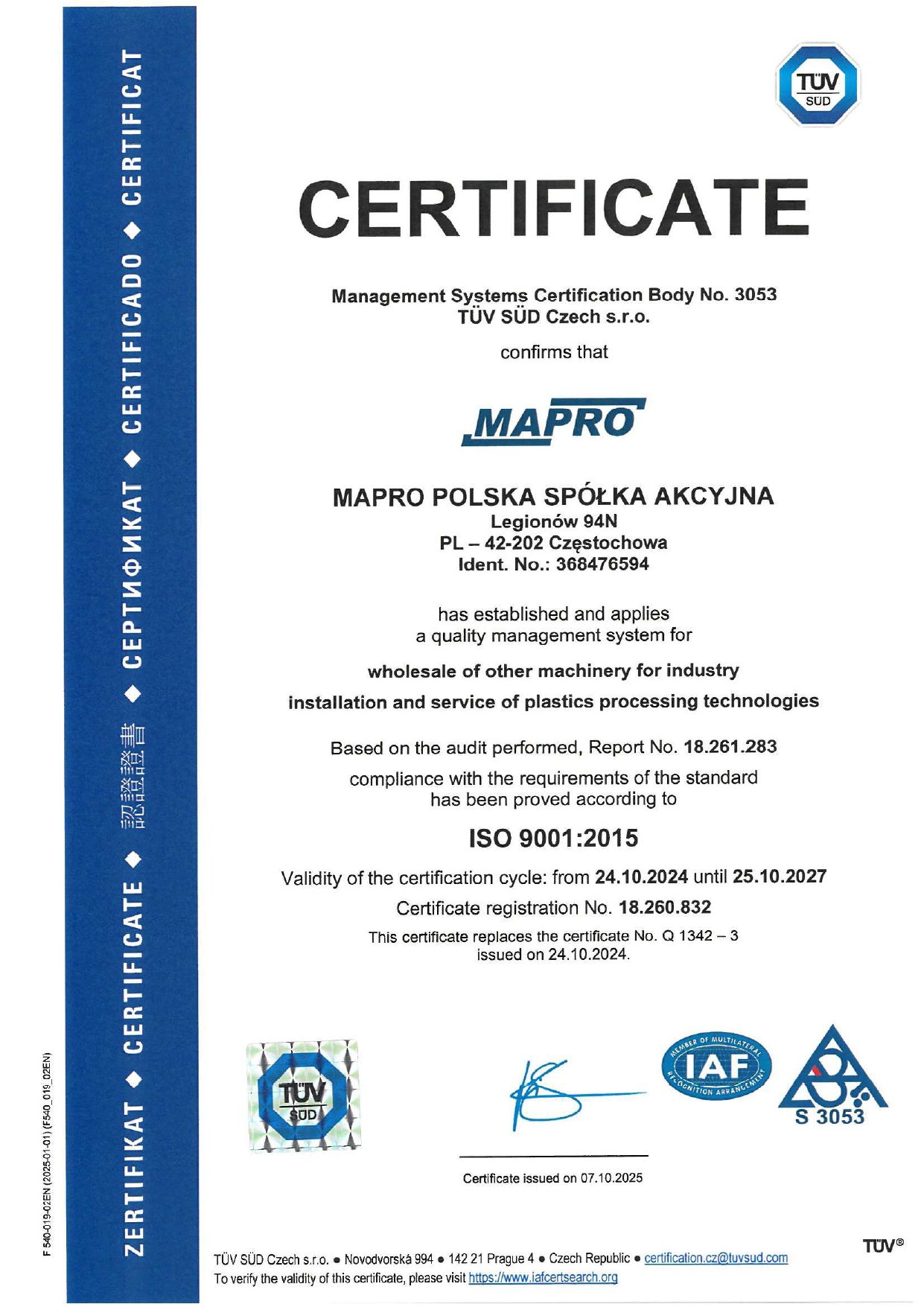 Zaměřujeme se na poskytování nejvyšších standardů našich služeb zákazníkům a rozšiřování našeho produktového portfolia, poskytujeme profesionální a spolehlivé poradenství při výběru strojů, robotů a periferních zařízení pro zpracování plastů.