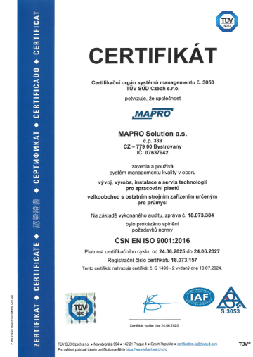 Kvalita práce každého z nás je základem pro to, aby společnost MAPRO Solution a.s. mohla prosperovat a rozvíjet se. Naše zásady kvality stojí na těchto principech: