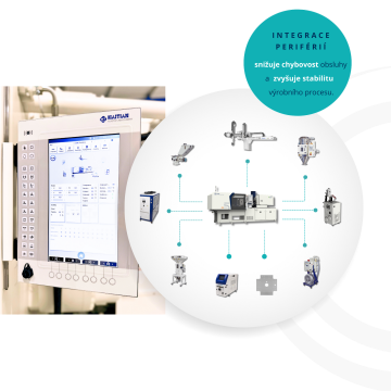 Periferní zařízení Haitian lze plně integrovat do ovládacího panelu vstřikovacího stroje.