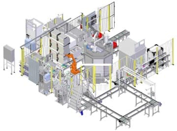Nejsložitější typ robotizace kombinované s řadou dalších aplikací vhodná zejména pro velkosériové výroby